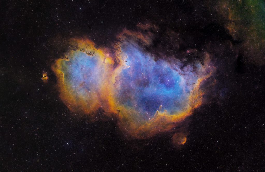 Exposure: 12.6h total, R 20x1min, G 18x1min, B 18x1min, Ha 107x4m, SII 80x4m, OIII 50x4m
